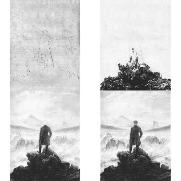 Friedrich apparently has often painted rear views of people in front of landscapes. It is said, here he has even put himself in the limelight. So this is officially a self-portrait (was it a shortcut for a detailed portrait ).