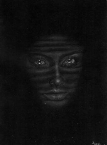 I inverted the original picture (on the computer) into a bright version and with that I made the bright drawing. After that I scanned the drawing and inverted it on the computer.