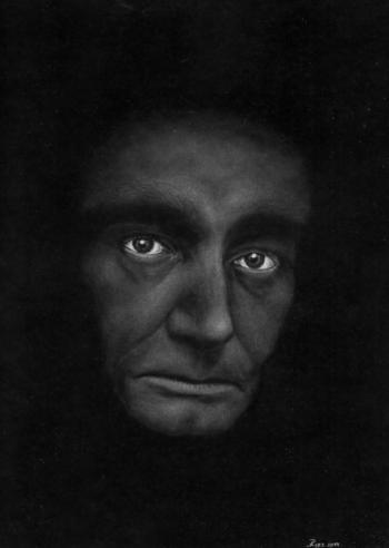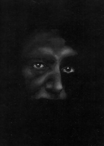 I inverted the original picture (on the computer) into a bright version and with that I made the bright drawing. After that I scanned the drawing and inverted it on the computer.