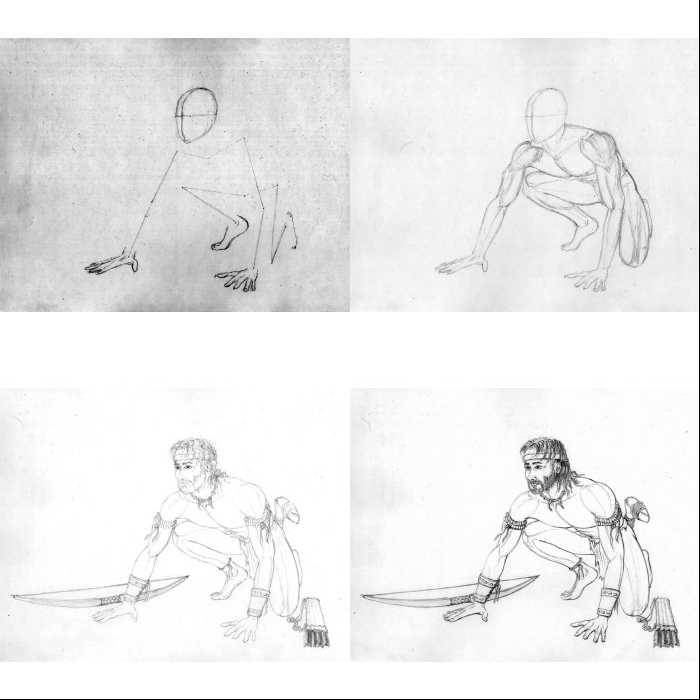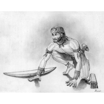 He is a hunter and he works with the flint. Exact blows with chisel made of horn he splits wafer-thin sliver - razor sharp and well suited for the ivory.
